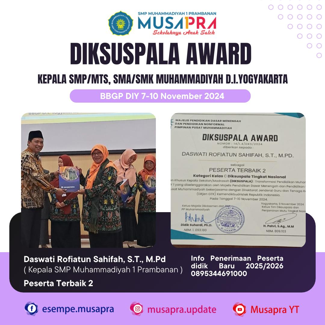 DIKSUSPALA AWARD KEPALA SMP MUHAMMADIYAH 1 PRAMBANAN