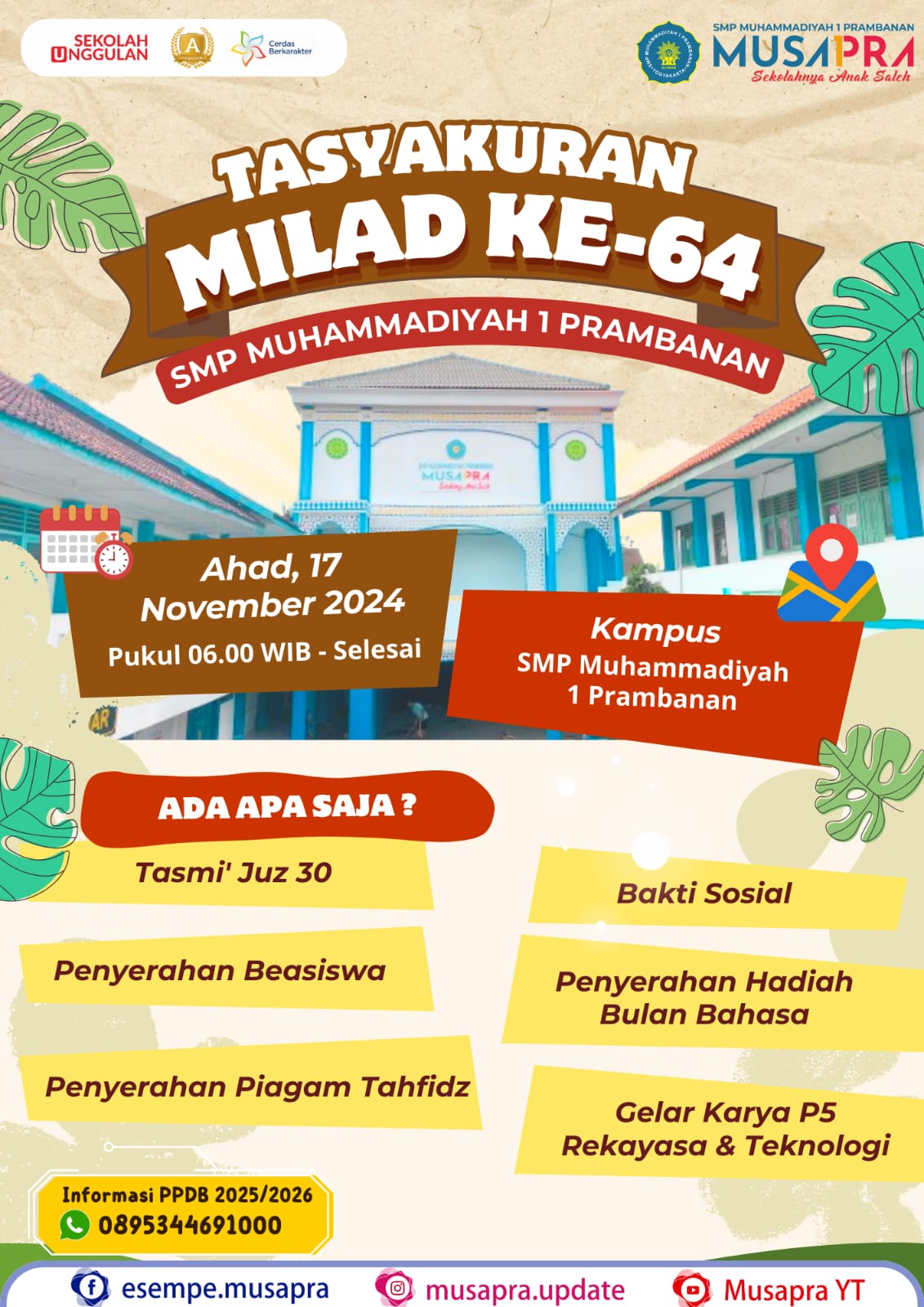 👤 Admin 🗓️ 1 Januari 2025 [ Giat MUSAPRA ] ======================== ↪️ Diseminasi (Pengimbasan) ========================= Kunjungi kami di: 🏢 SMP Muhammadiyah 1 Prambanan: Gatak, Bokoharjo, Prambanan, Sleman, Daerah Istimewa Yogyakarta ========================== […]