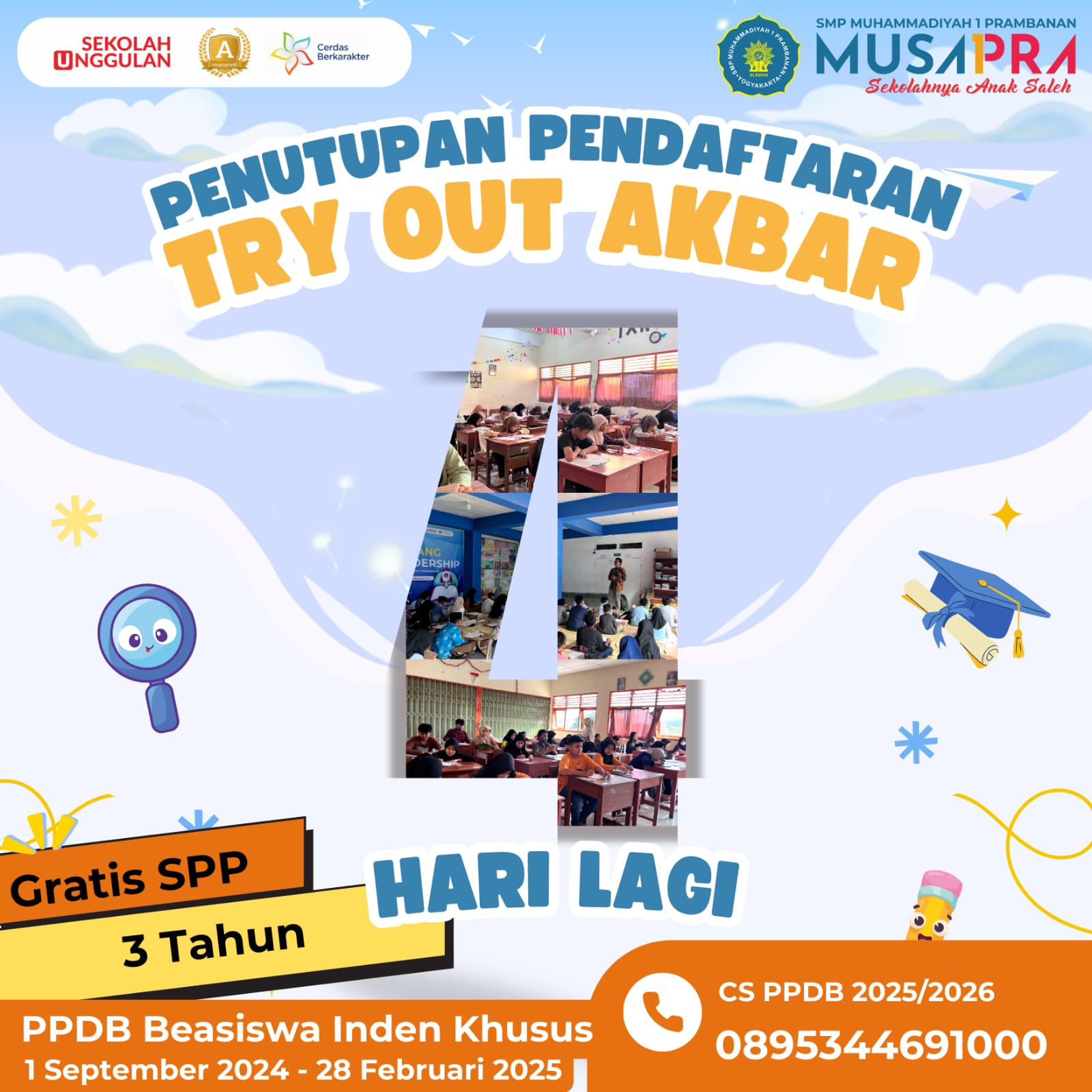 ๐ค Admin ๐๏ธ 9 Januari 2025 (Musapra Update) Masih bingung cari sekolah??? Ayo segera bergabung bersama SMP Muhammadiyah 1 Prambanan dengan Layanan Multi Talenta. Pastikan putra-putri anda masuk kelas […]